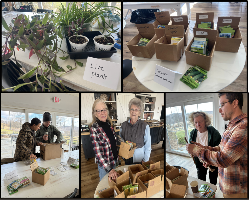 On a Saturday in late March, The Uplands hosted its first community seed exchange. Dining hall tables were transformed into stations of various seed types, including a live plants table and a trees & shrubs sections. Dozens of community members attended the event to share their favorite seeds, exchange growing tips with neighbors, and take home new varieties. From everyday classics like cucumbers and carrots to special heirloom tomato varieties, and some unique standouts like the coveted paw-paw, the array of seeds reflected the diversity of community members in attendance.