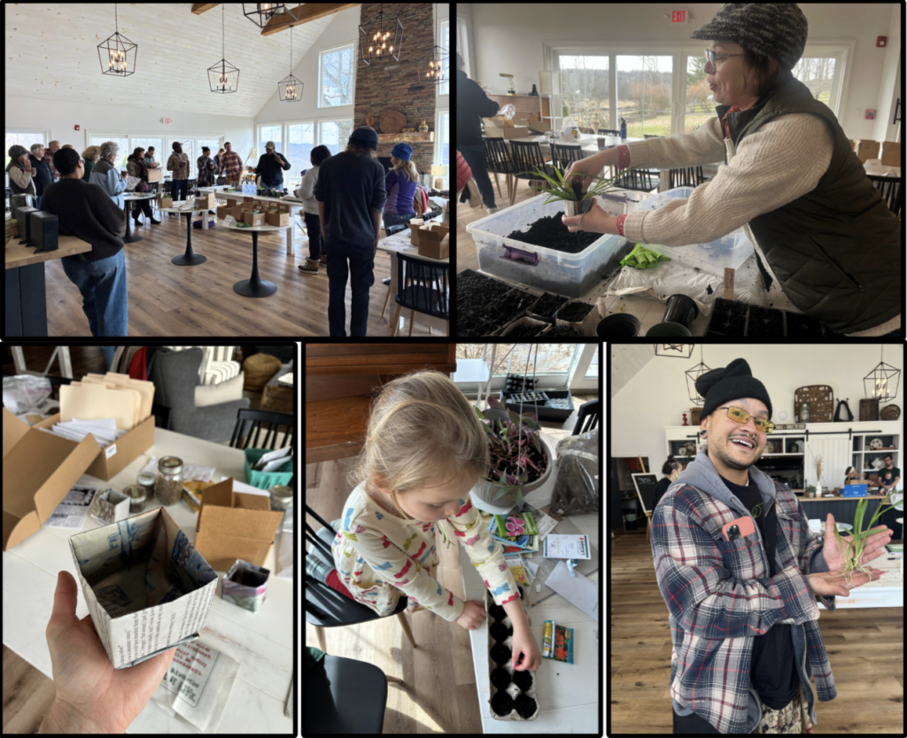 Iridescent Earth Collective – a community of farmers, artists, and activists in Delaware County – held a seed starting workshop within the exchange. Attendees learned the basics of seed biology as well as some practical tips and hands-on experience on starting various seeds at home with readily-available supplies (including how to make a pot out of newspaper!) Community members left with seeds in hand, new knowledge to share, and connections that will continue to grow across our local gardens.